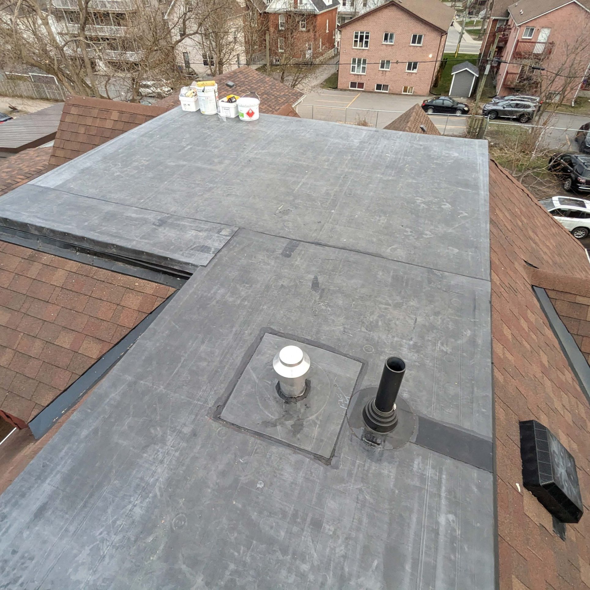 TPO roofing installation on downtown Kingston’s historic building